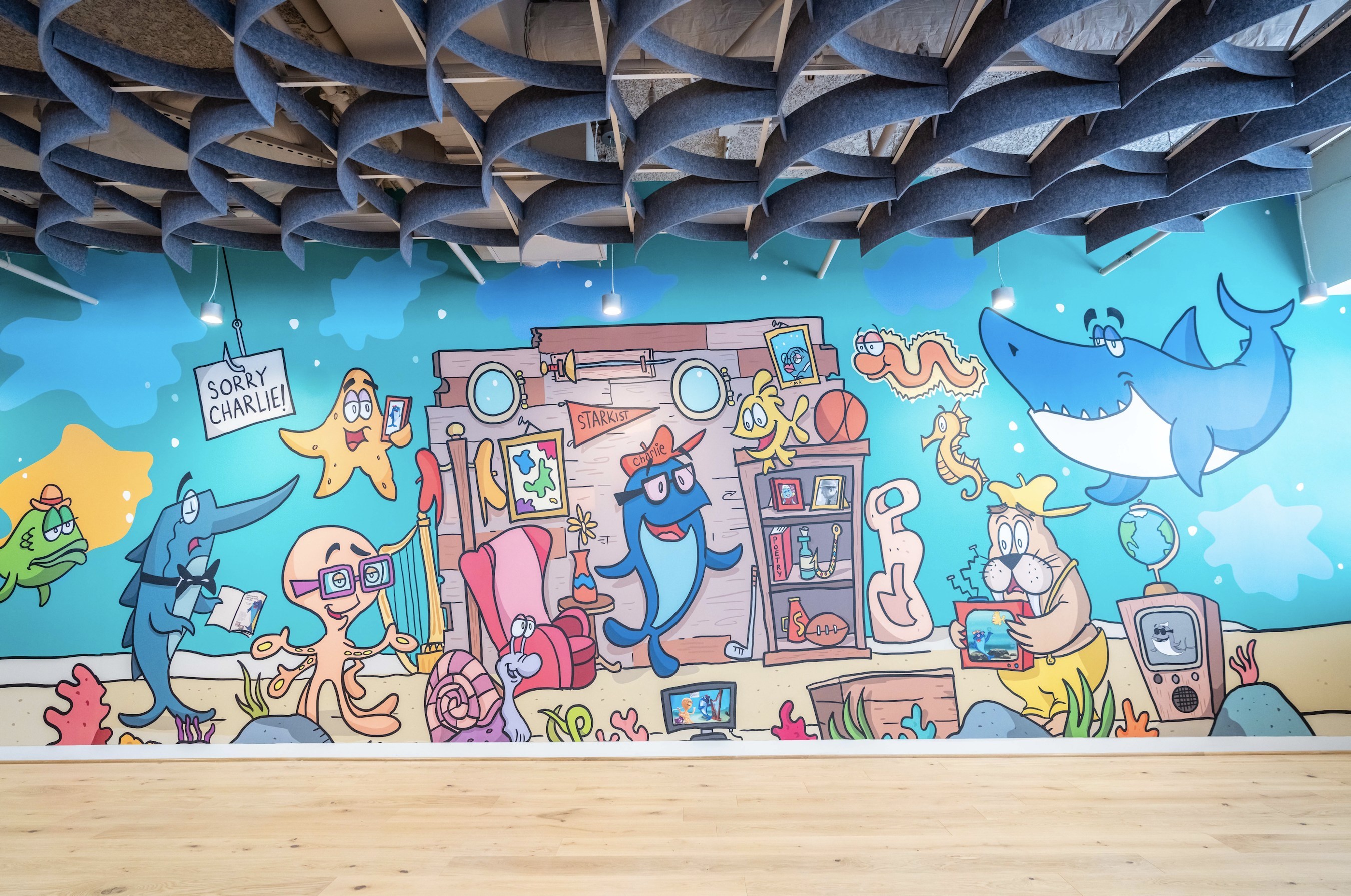 El mural personalizado de StarKist fue creado por Joe Wos, artista e historiador de Charlie the Tuna®; crédito de la fotografía: Anfon Ha