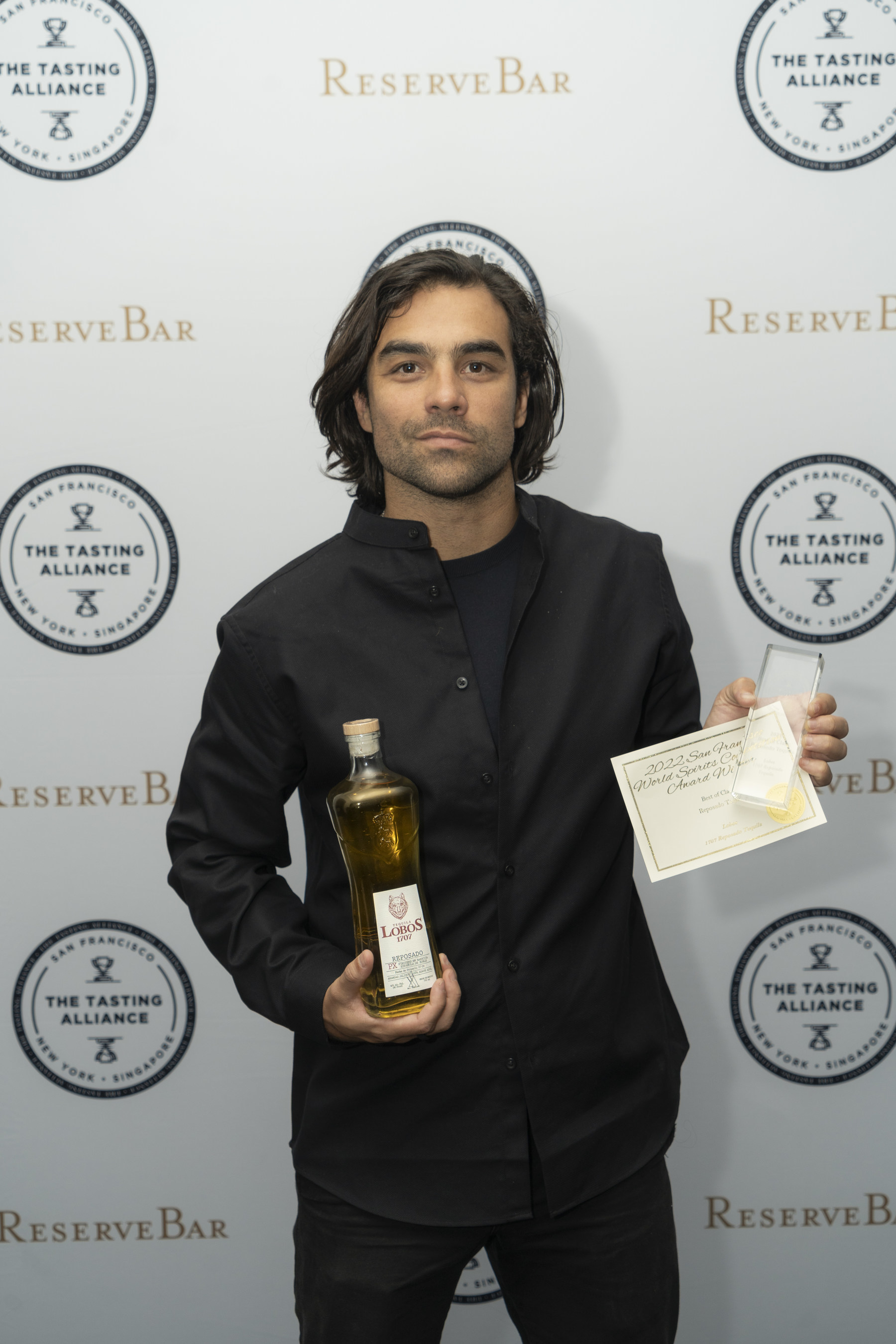 Diego Osorio, fundador y director creativo de Lobos& 1707, recibe el premio Mejor Tequila Reposado en la San Francisco World Spirits Competition& 2022