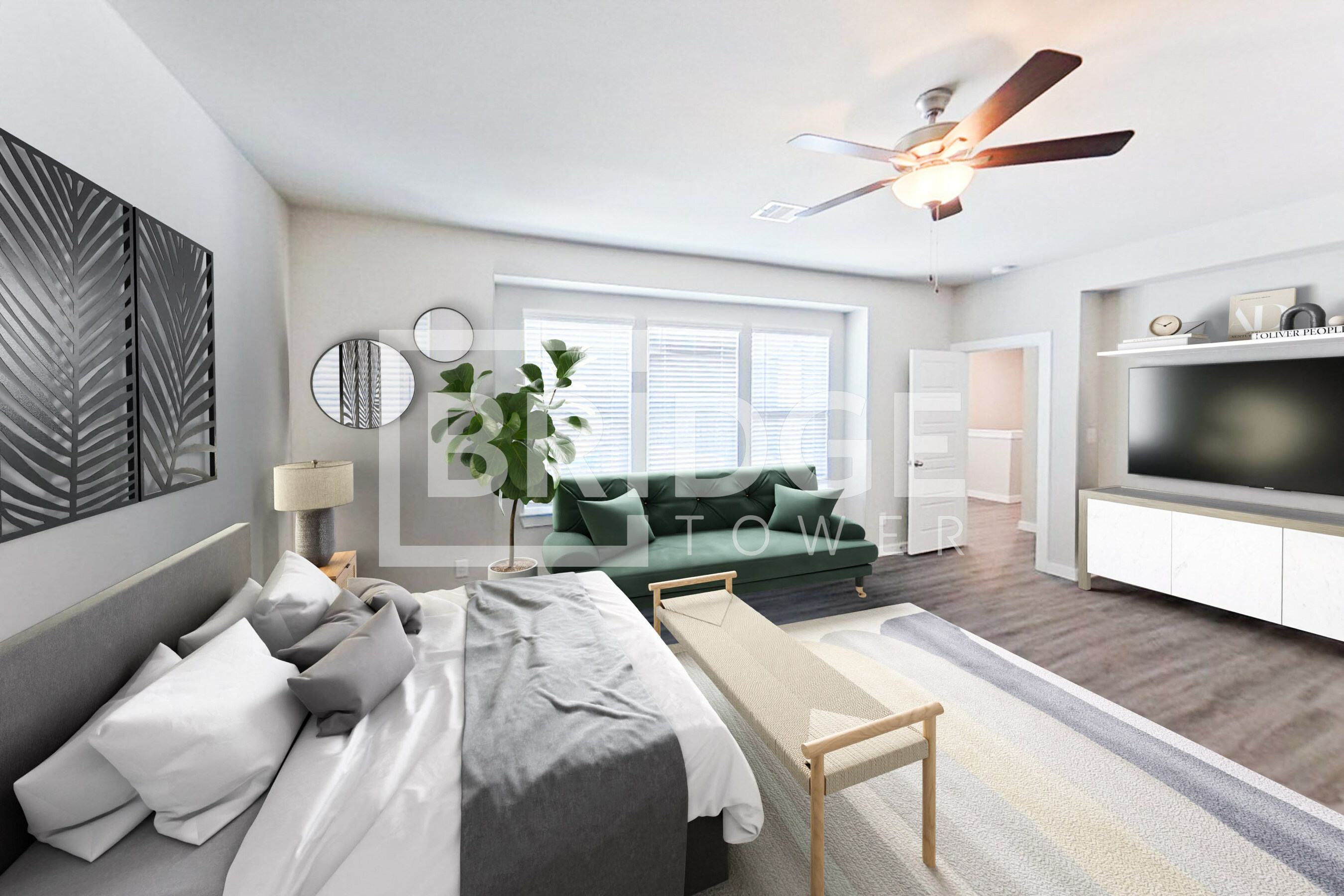 The large master bedroom space at the newly-constructed Lakewood Manor community in Lake Jackson, TX provides privacy and comfort with an attached master bath and Texas-sized walk-in closet.